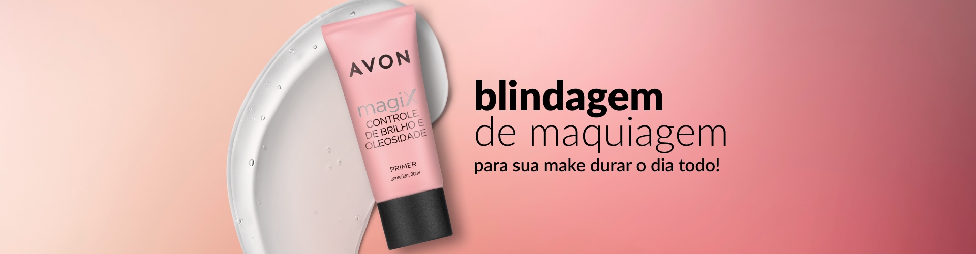 Nós indicamos o Primer Magix Controle de Brilho e Oleosidade da Avon que uniformiza a sua pele antes da base e traz um acabamento com menos textura.