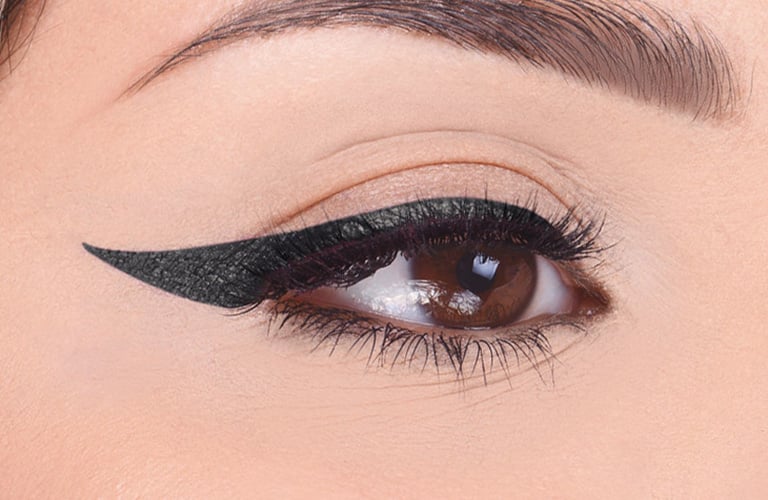 O delineador líquido entrega um traço fino e ultra definido. Esse é tipo de delineador preferido para fazer o desenho gatinho e para quem busca um acabamento intenso. Aqui, é preciso ter uma mão mais firme, mas nada que um tutorial não ajude!