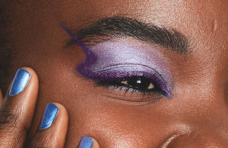 A maquiagem punk combina elementos metálicos, traços geométricos e um estilo mais borrado ou esfumado. Os tipos de delineados são mais grossos e os desenhos podem incluir pontas afiadas ou detalhes vazados e leves borradinhos na linha d’água.