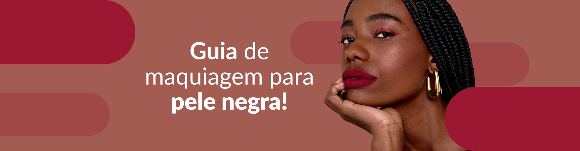 Nos lábios, cores fechadas como vinho, cereja e marrom ficam extremamente elegantes porque acompanham a profundidade da sua pele. Para o nude, o segredo é escolher um fundo marrom, caramelo ou malva. Afinal, nudes muito beges ou rosados apagam o contorno labial e criam um visual pálido da maquiagem na pele negra.