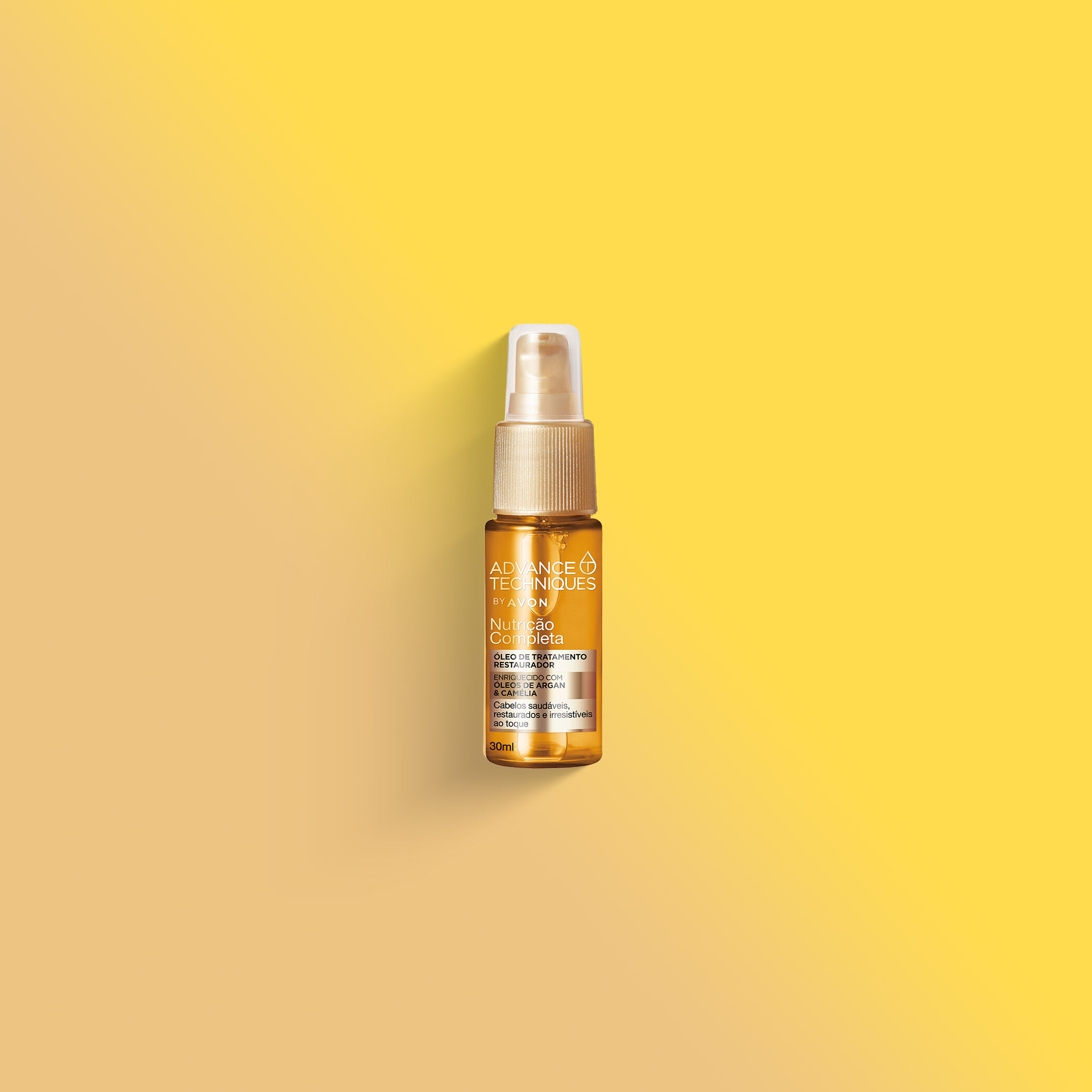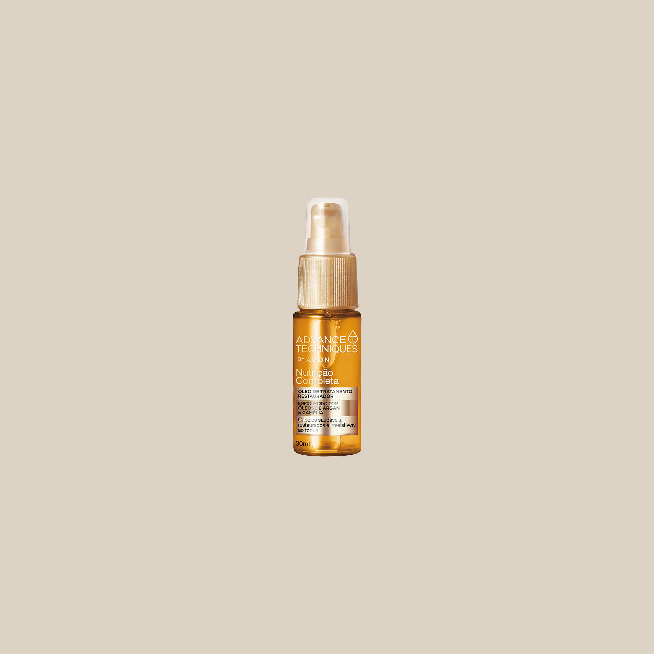 • O Óleo de Tratamento Restaurador Advance Techniques Nutrição Completa combina os poderosos óleos de argan e camélia para nutrir profundamente, selar a cutícula e restaurar instantaneamente os fios danificados.