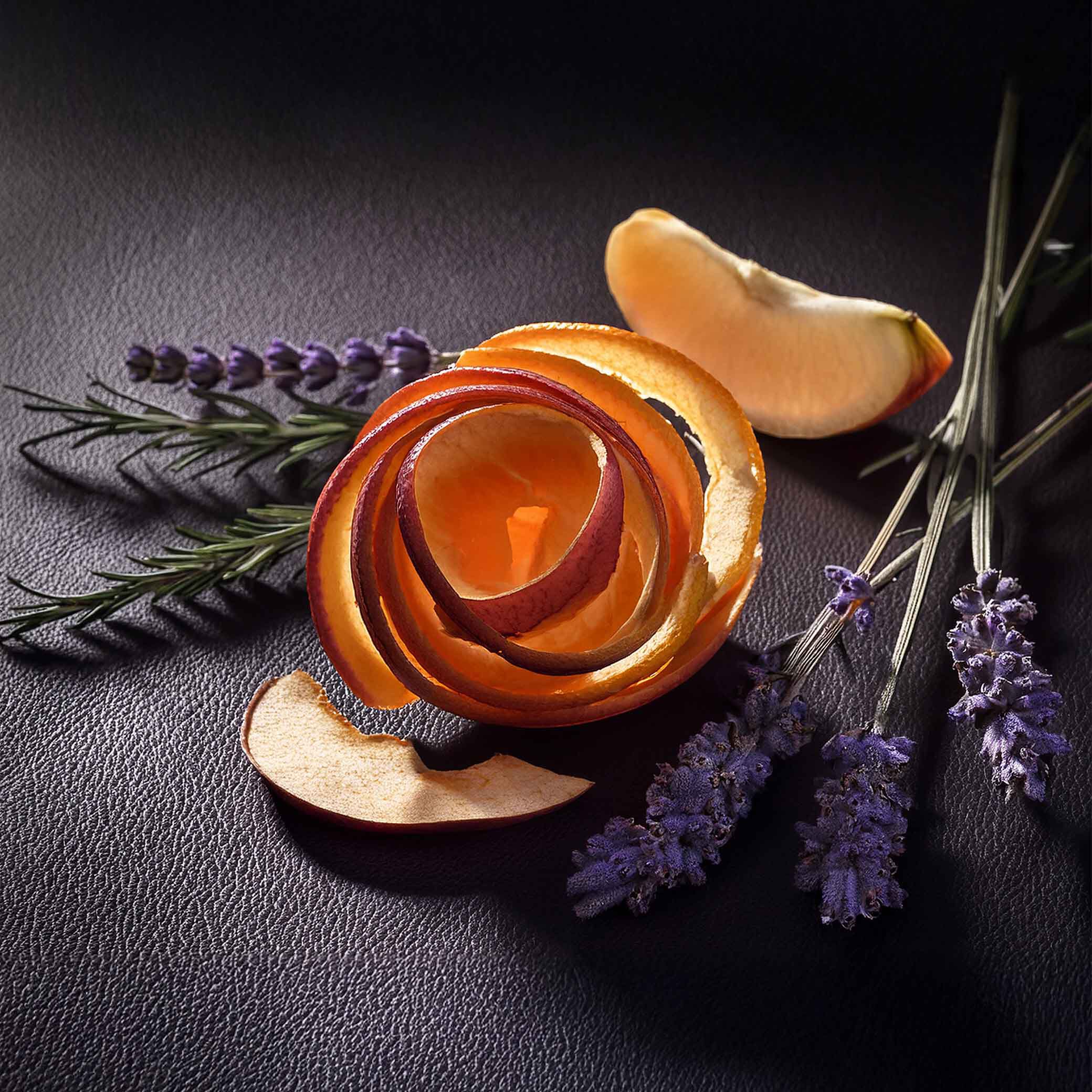 • As notas de Mandarina, Maçã Crocante e Folha de Cedro trazem um frescor inicial vibrante, enquanto o coração floral de Lavanda Azul Selvagem, Sálvia e Folhas de Manjericão adiciona sofisticação.