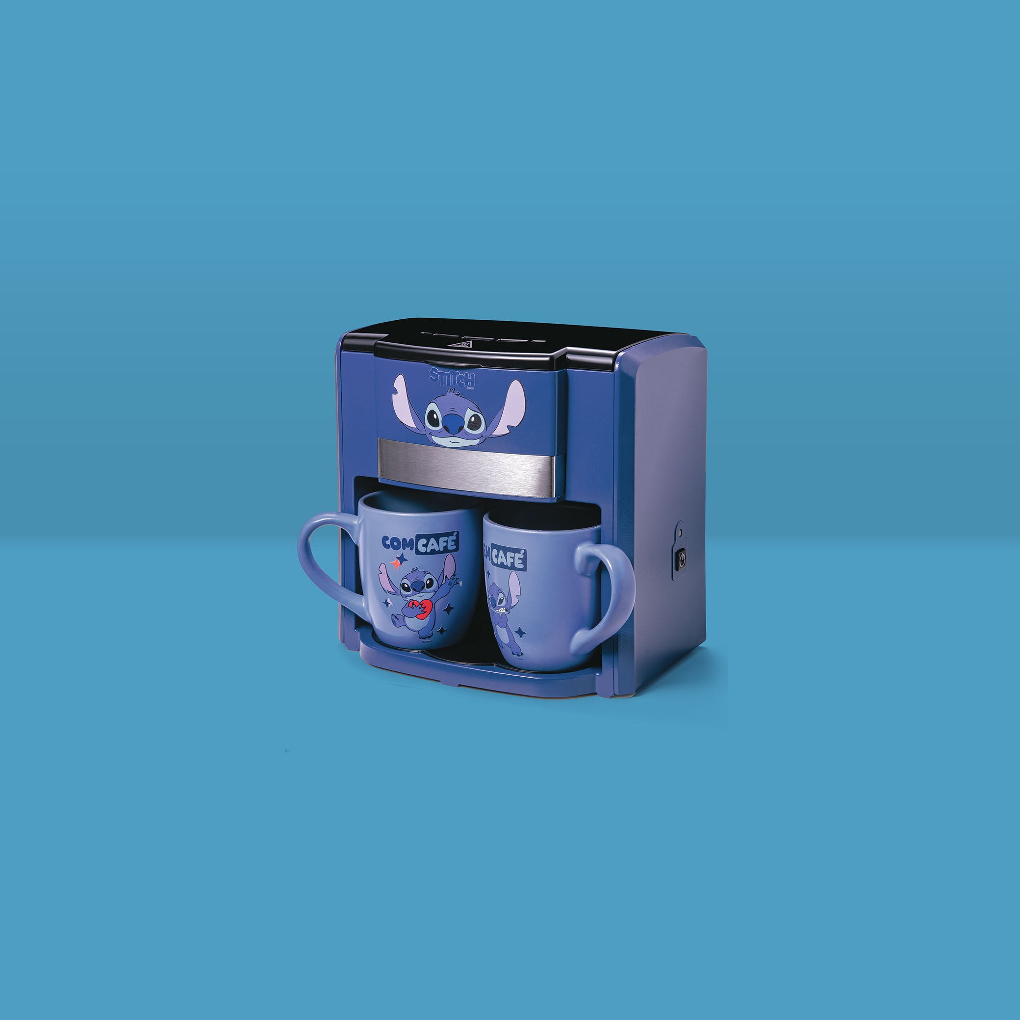 Com design exclusivo do Stitch, a cafeteira prepara seu café de forma rápida e prática, já servido em duas canecas temáticas. É a combinação ideal de funcionalidade e diversão para transformar qualquer pausa para o café em um momento especial.