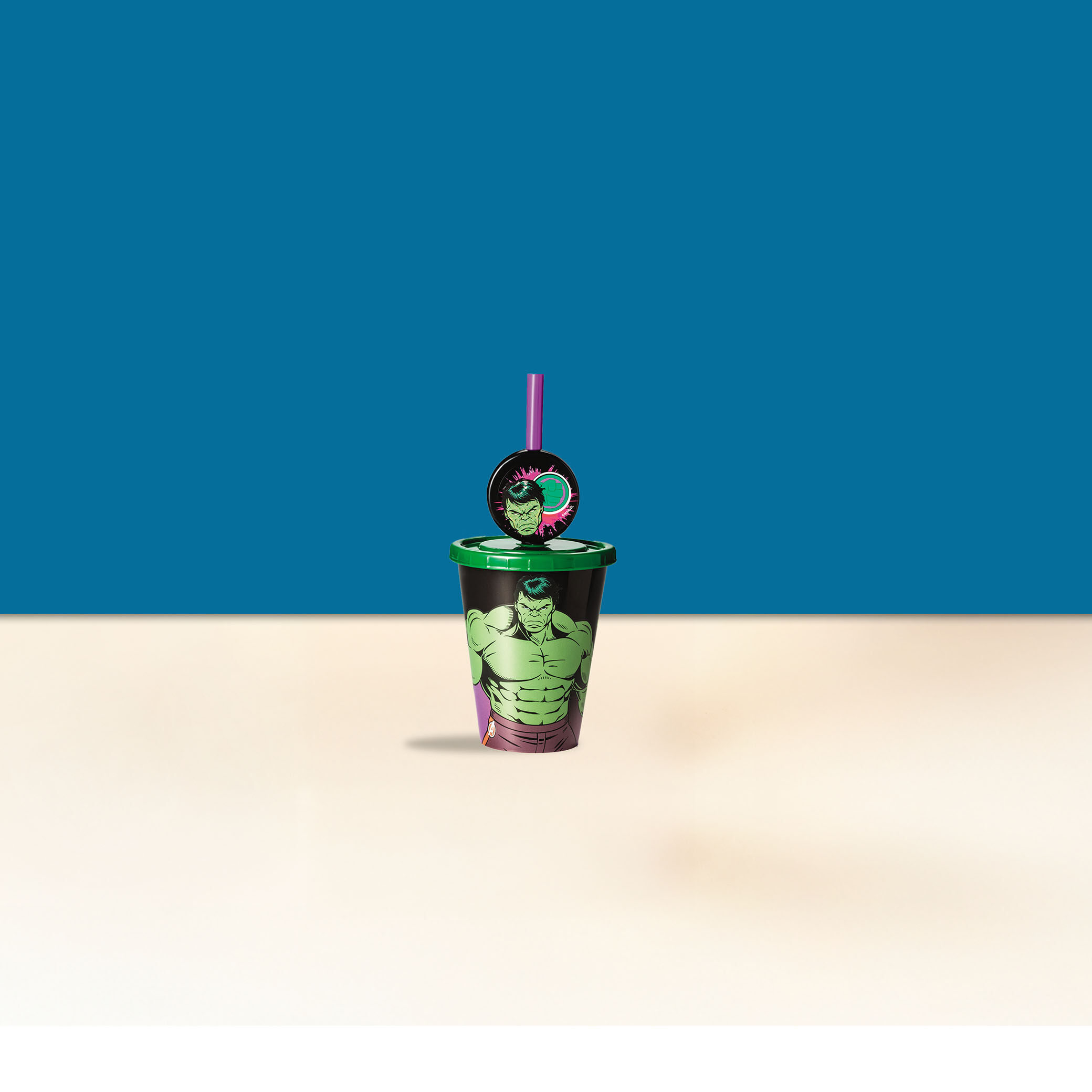Com estampa exclusiva do Hulk, o Copo Pingente combina praticidade e força para tornar seus momentos ainda mais especiais.