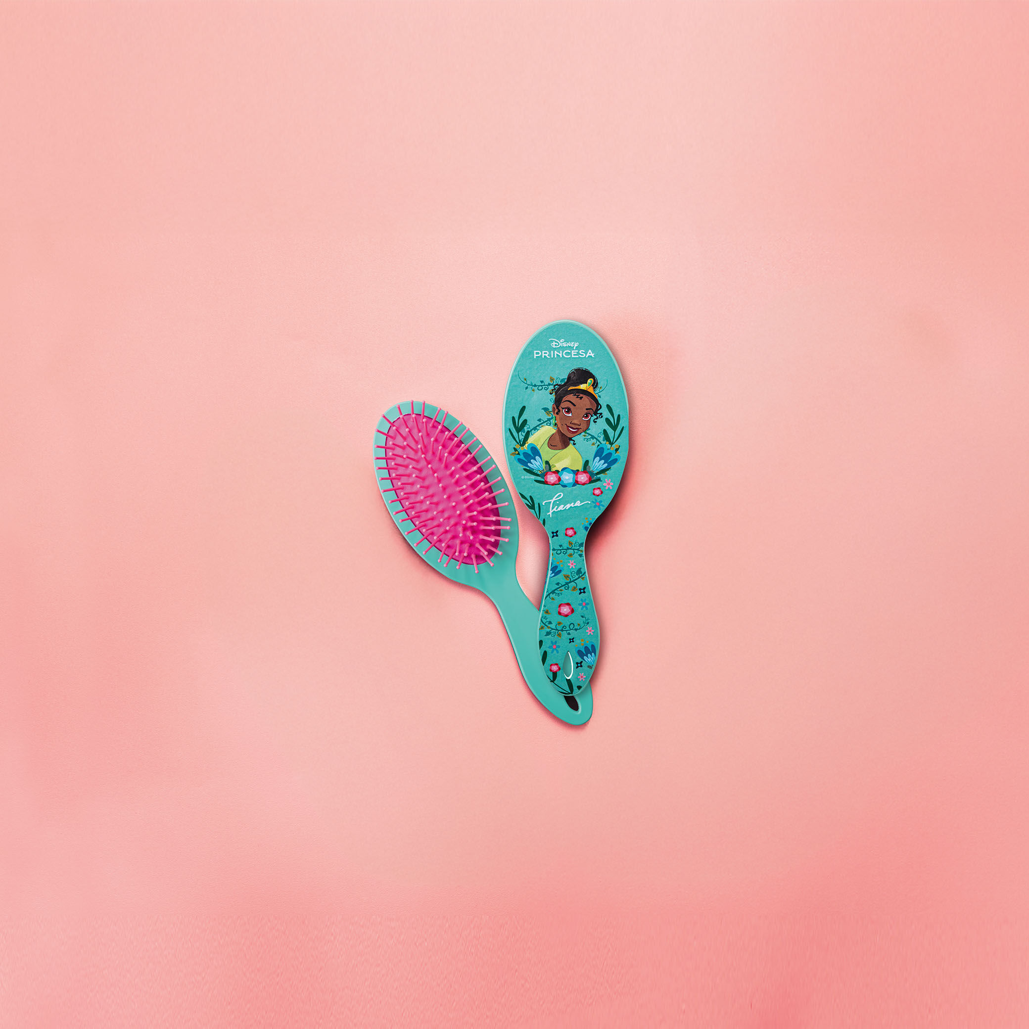 Com cerdas suaves e estampa exclusiva da Princesa Tiana, a Escova de Cabelos transforma o momento de cuidar dos fios em algo mágico e inspirador.