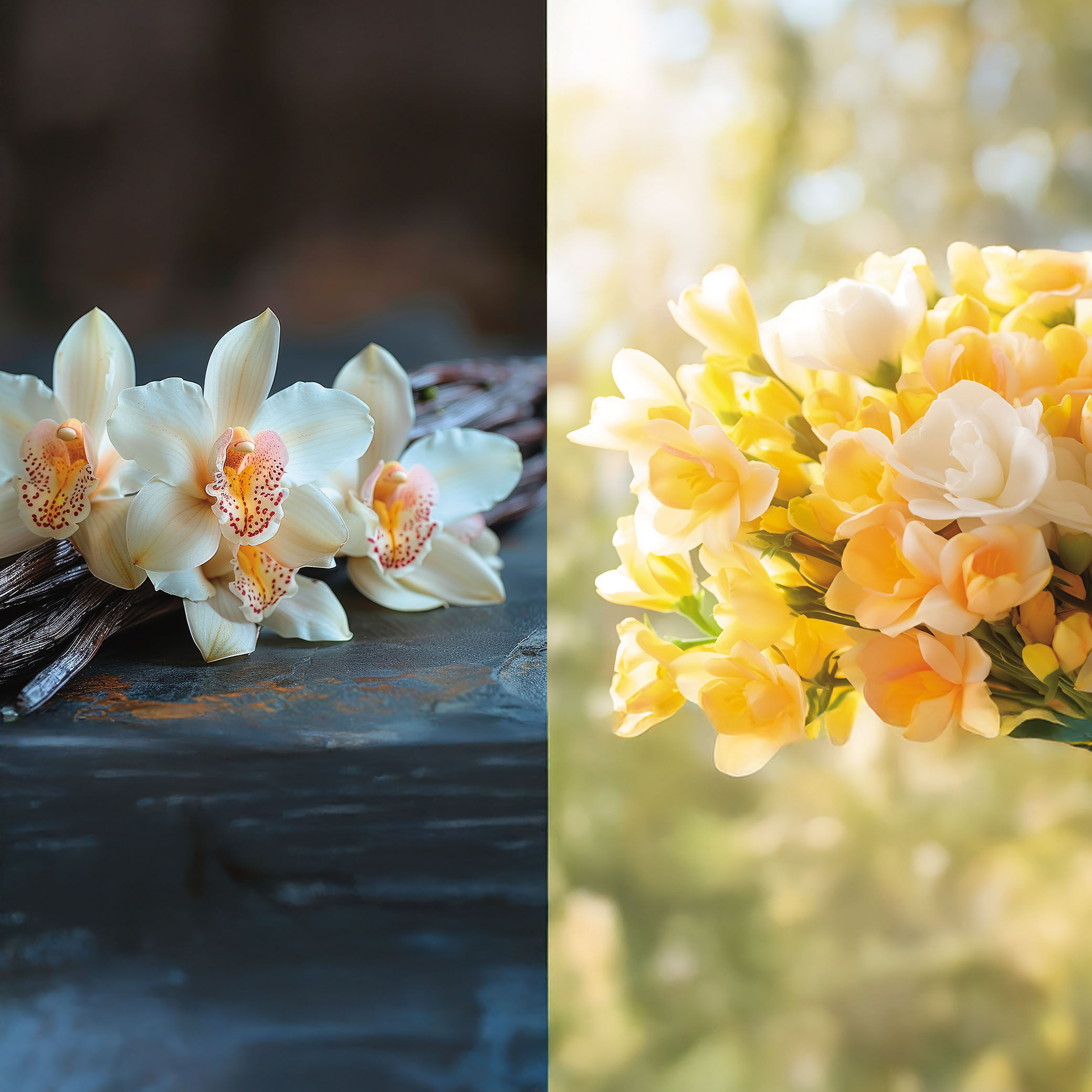 Jasmim: Uma das flores mais preciosas do mundo, com um contraste entre pureza e sensualidade, transporta quem usa para lugares exuberantes. Frésia: Delicada e floral, traz um frescor natural e puro, evocando o ar delicioso da primavera.