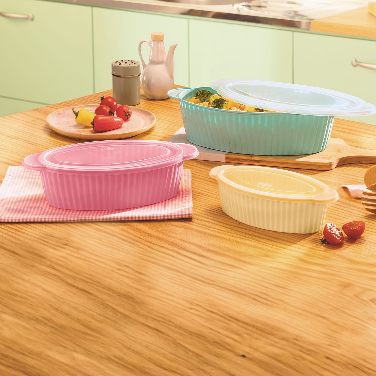 Com o Kit 3 Potes Canelados Ovais Candy, sua cozinha ganha um toque de cor vibrante, organização inteligente e a versatilidade perfeita para armazenar uma variedade de alimentos com praticidade e estilo! As cores suaves e convidativas transformam o simples ato de guardar alimentos em um toque de charme e otimismo.