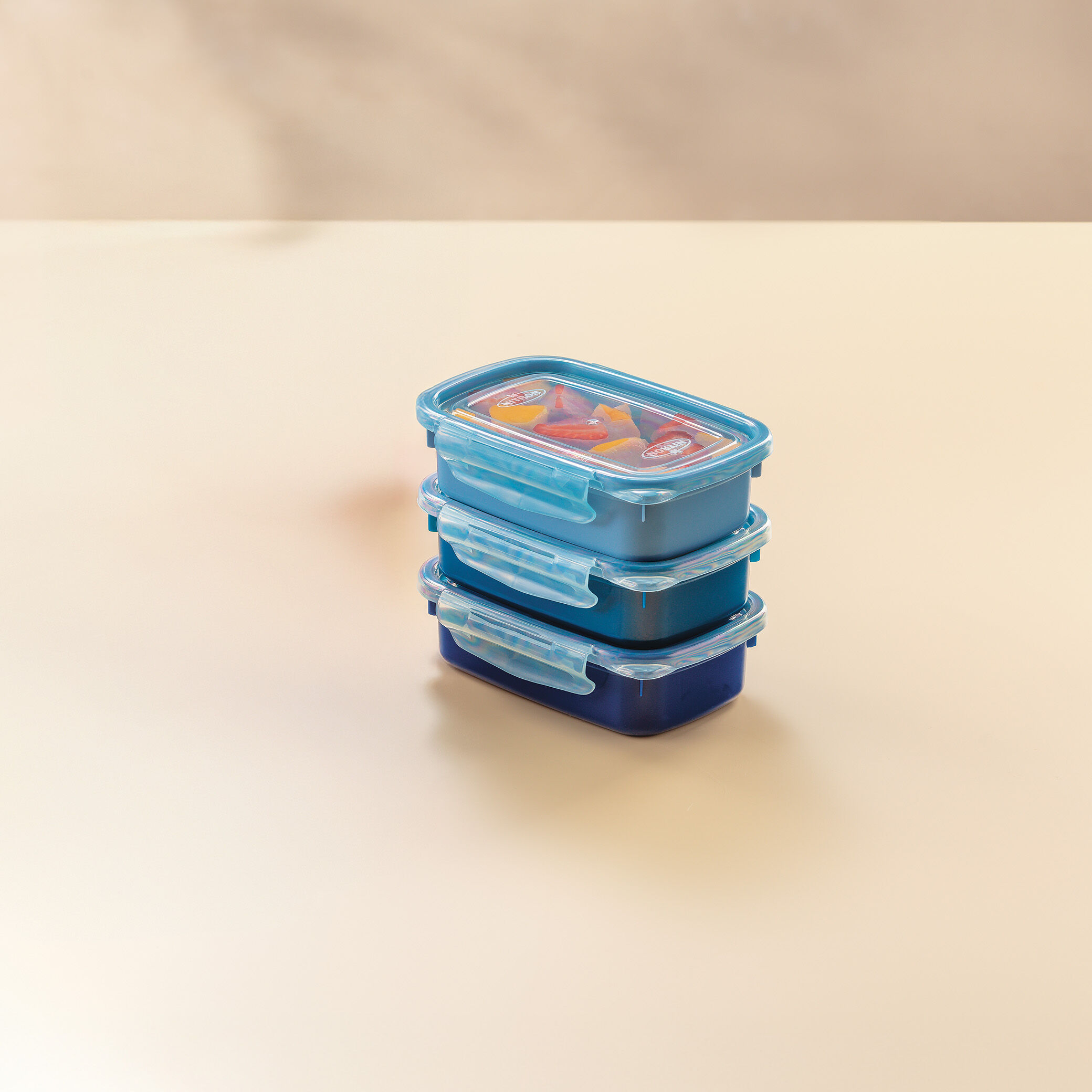O Kit 3 Potes com Trava Azul é ideal para armazenar e transportar alimentos com segurança e elegância. Compactos e funcionais, eles são ideais para facilitar sua rotina.