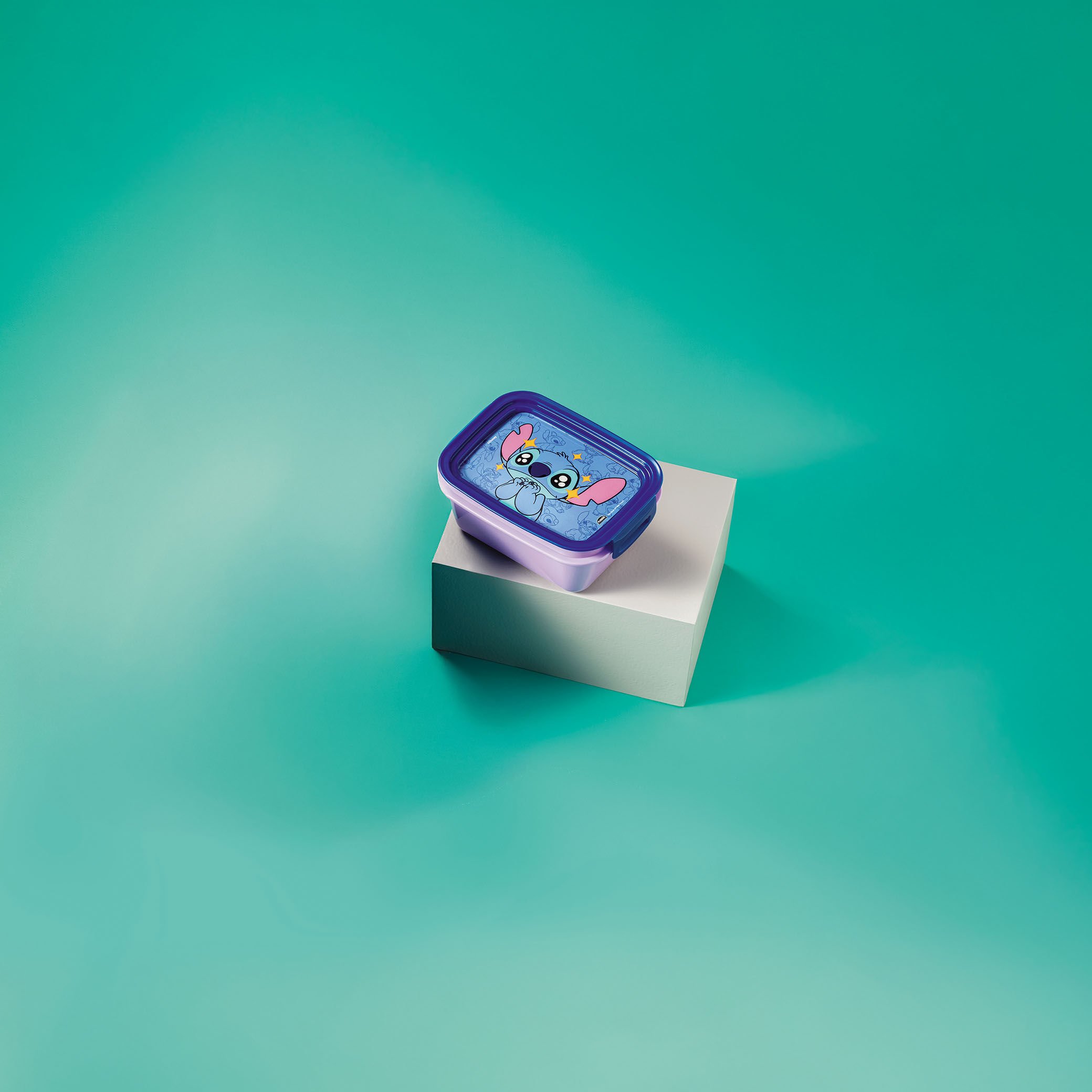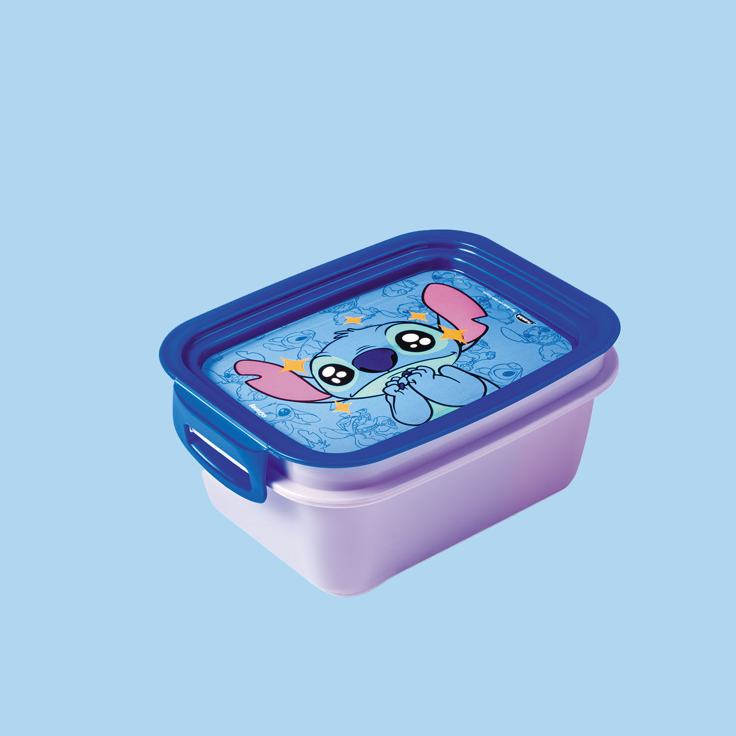 Perfeita para lanches ou refeições, com travas seguras e estampa exclusiva do Stitch.