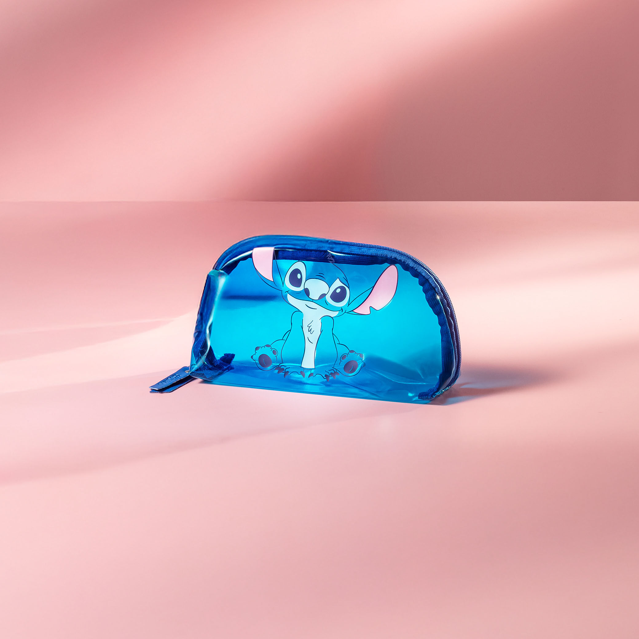 Com design meia lua e transparência moderna, o Nécessaire Stitch une praticidade e estilo. Compacto e funcional, é ideal para manter seus itens organizados no dia a dia ou em viagens.