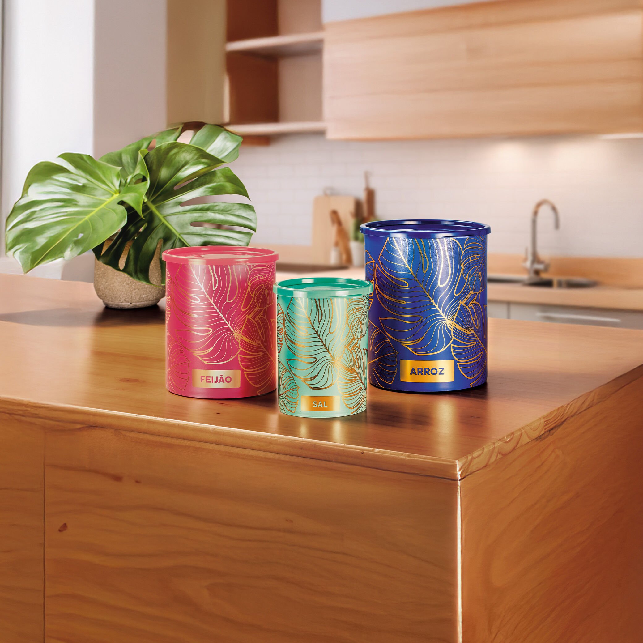 Feito em plástico resistente e livre de BPA, o pote Natural Gold oferece segurança aos seus alimentos e organiza sua cozinha, trazendo o charme e a beleza da natureza com um toque de glamour.